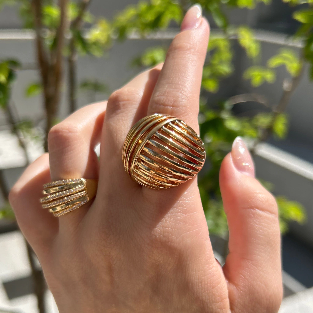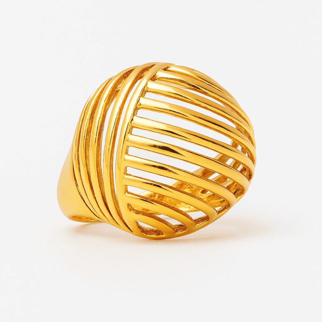 SOBRE A PEÇA: Nosso Anel Vazado é uma peça robusta e imponente, banhada a ouro 18k, com um design geométrico que equilibra força e sofisticação. Seu formato vazado traz leveza ao visual, ao mesmo tempo em que mantém sua característica marcante e ousada, tornando-a um destaque em qualquer produção.