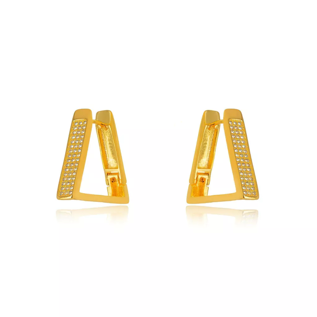 SOBRE A PEÇA: O Brinco de Argola Micro Zircônia Triangular é a síntese perfeita de modernidade, sofisticação e exclusividade. Banhado em ouro 18k, suas micro zircônias cravejadas em formato triangular criam um brilho refinado e único, elevando qualquer produção. Ideal para mulheres que valorizam presença marcante, estilo icônico e glamour contemporâneo, esta argola transforma looks do cotidiano ou eventos especiais em uma declaração de luxo, confiança e personalidade.