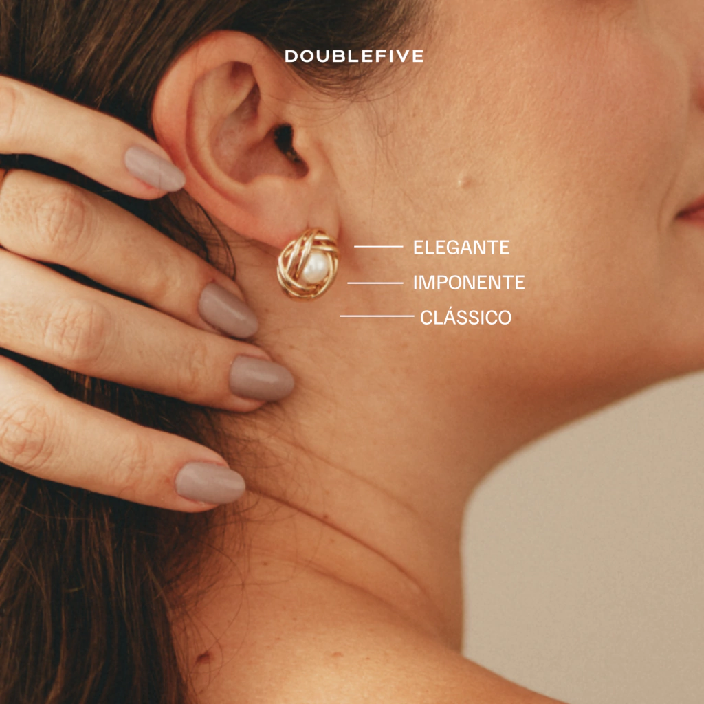 ESSÊNCIA DOUBLEFIVE: Inspirado na mulher que abraça a sua liberdade e se permite brilhar com autenticidade, o Brinco Ninho com Pérola é uma peça que simboliza o equilíbrio entre estilo e elegância. Perfeito para quem deseja expressar sua essência com peças que combinam beleza e sofisticação em todos os momentos.
