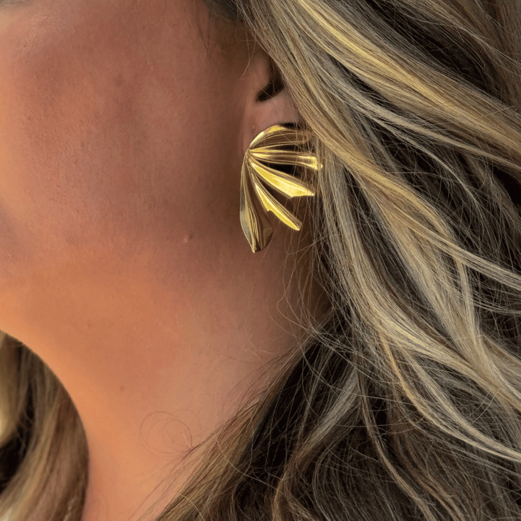 ESSÊNCIA DOUBLEFIVE: Para a mulher que valoriza acessórios que fazem uma afirmação de estilo, o Brinco Pétala é um acessório indispensável, projetado para realçar a beleza e a força de quem o usa com um design único e marcante.