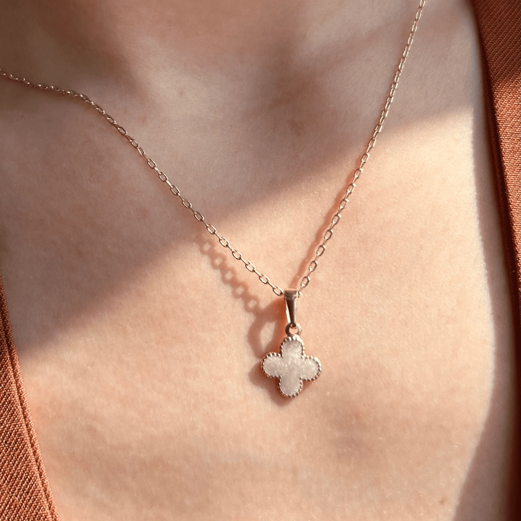 SOBRE A PEÇA: Banhado em ouro 18k, o Colar Trevo Perolado traz um pingente em formato de trevo com aplicação perolada, criando um contraste elegante entre o dourado e o brilho suave da pérola. Um design delicado e marcante que une simbolismo e sofisticação.